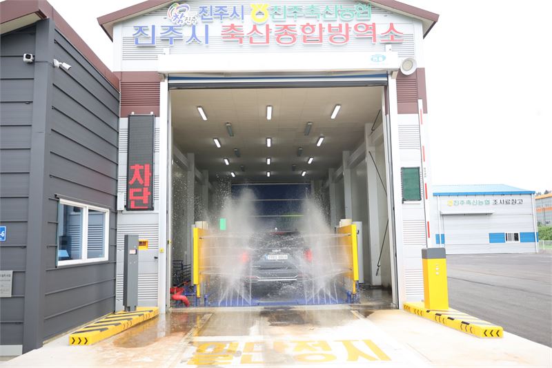 진주시가 지난 20일 진주 진성면 소재 축산종합방역소의 차단방역 거점소독시설을 점검하고 있다. 이상 진주시 제공