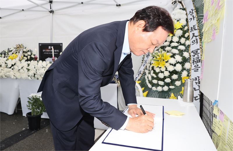 박 도지사는 분향소에 마련된 방명록에 ‘삼가 고인의 명복을 빕니다. 우리 사회가 다시는 이런 안타까운 일이 일어나지 않도록 사회적 합의와 노력이 필요합니다’고 적었다.