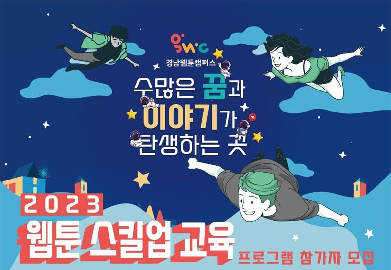 경상남도와 경남웹툰캠퍼스는 지역 웹툰 인재 양성과 역량강화를 위해 ‘2023 경남웹툰캠퍼스 웹툰 스킬업 교육 프로그램’을 한다고 밝혔다.