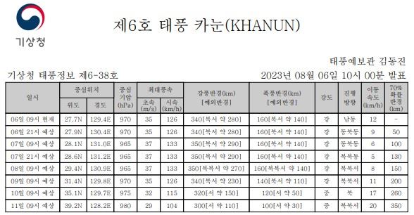 태풍 ‘카눈(Khanun)’이 일본 규슈를 지나 오는 10일 부산·경남 해안에 상륙할 전망이다.