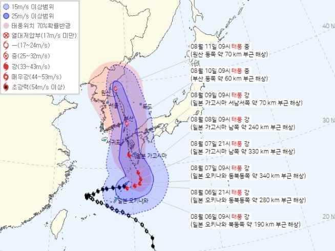 기상청 관계자는 “태풍의 진로가 유동적인 가운데 9일부터 전국이 태풍의 직접 영향권에 들고, 영동과 영남 지방은 강한 비바람이 몰아치겠다”며 “철저한 대비가 필요하다”고 전했다.