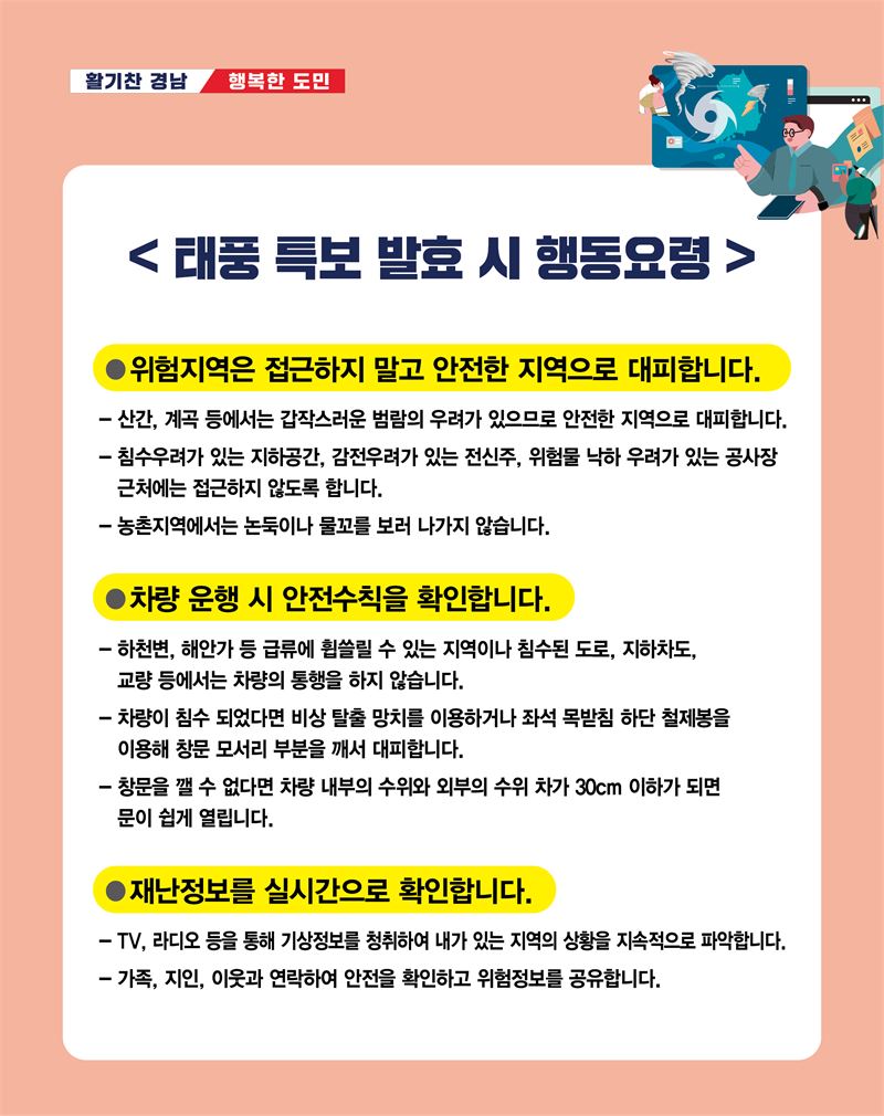 ▶ 경남도 누리집(기상정보 및 태풍시 행동요령 확인) https://www.gyeongnam.go.kr/