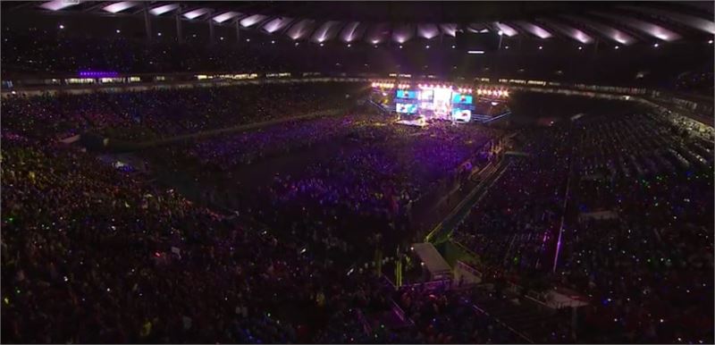 'K-팝 슈퍼 라이브' 콘서트가 진행 중인 서울 상암월드컵경기장 모습. 시청률 20%를 기록하는 등 KBS는 대박을 터뜨릴 전망이다.