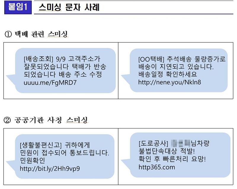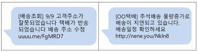 택배 관련 스미싱 사례. 과학기술정보통신부 제공