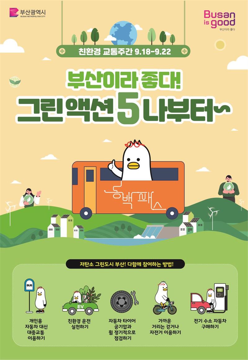 부산시는 '세계 차 없는 날(22일)'을 기념해 오는 18~22일 친환경 교통주간을 운영한다고 밝혔다.