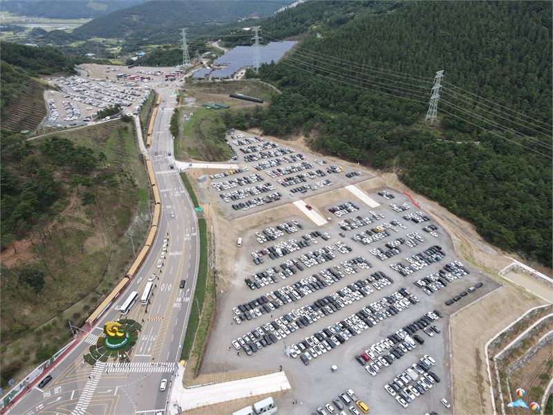 방문객들이 타고 온 차량이 꽉 들어찬 주차장 모습