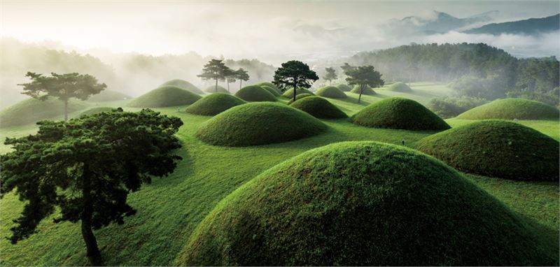 전북 남원시 유곡리와 두락리 고분군(사적 제542호)은 5~6세기에 조성됐으며 유산 구역은 9.52ha입니다. 가야연맹 중 가장 서북부 내륙에 위치했던 운봉고원의 가야 정치체를 대표하는 고분군이지요. 백제와 자율적으로 교섭했던 가야 정치체의 모습을 잘 보여준다는 평가를 받았습니다.