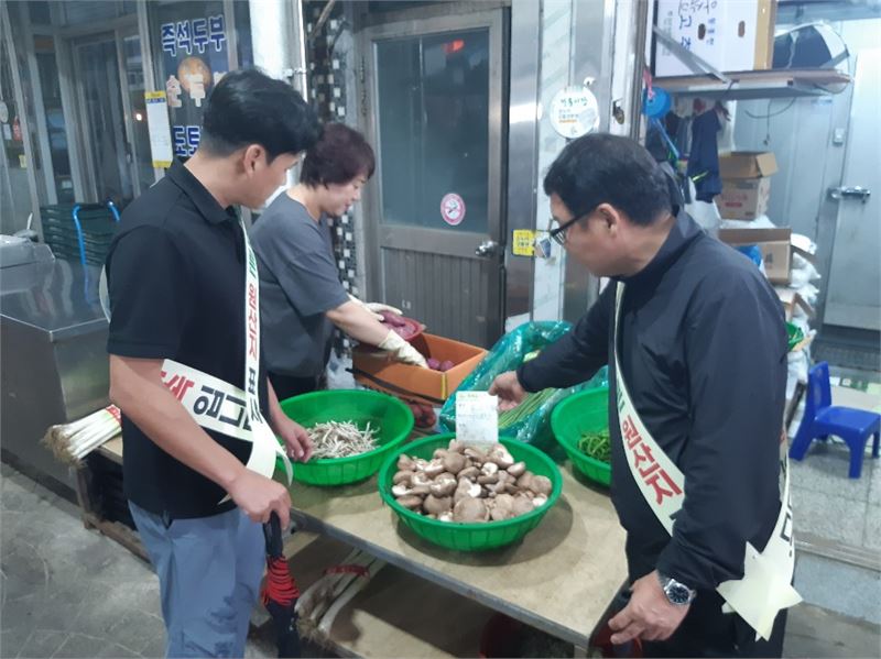 경남 고성군과 고성산림조합 단속반이 21일 추석 명절을 맞아 전통시장을 돌며 임산물 원산지 표시 특별 지도·단속을 하고 있다.