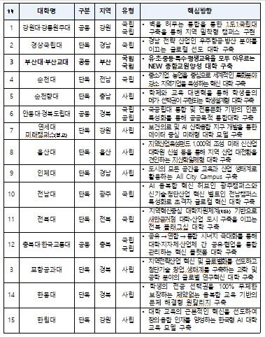 최종 지정 결과는 올해 11월 교육부(글로컬대학위원회)에서 10개 내외의 대학을 발표한다.