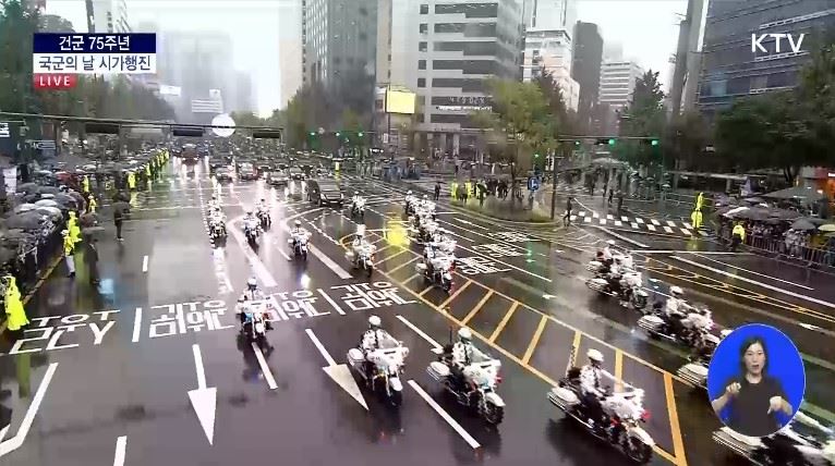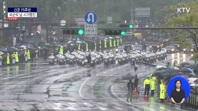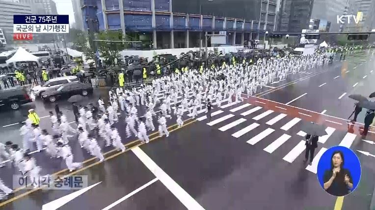 지난 2013년 이후 10년 만에 펼쳐진 시가행진을 KTV 중계방송을 통해 따라갔다. 시가행진은 육·해·공군과 해병대 병력이 참가해 오후 4시부터 숭례문~광화문간을 행진해 가도의 시민들의 큰 박수를 받았다.