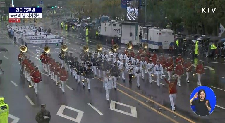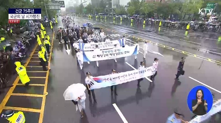 지난 2013년 이후 10년 만에 펼쳐진 시가행진을 KTV 중계방송을 통해 따라갔다. 시가행진은 육·해·공군과 해병대 병력이 참가해 오후 4시부터 숭례문~광화문간을 행진해 가도의 시민들의 큰 박수를 받았다.