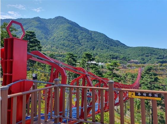 210m 정도 되는 무릉교를 건넌 뒤 기체험장을 바라보고 찍은 광경