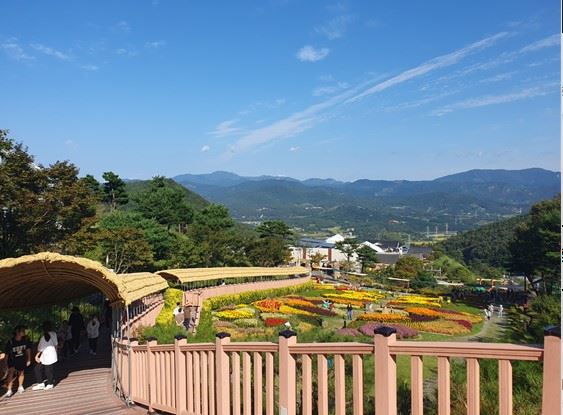 추석연휴 다음 날, 가는 날이 장날이어선지 동의보감촌 차량은 쉼없이 관람객들을 실어나르고 있다. 기체험을 하는 동의관과 무릉교(출렁다리)를 구경하려고 올라가고 있다.