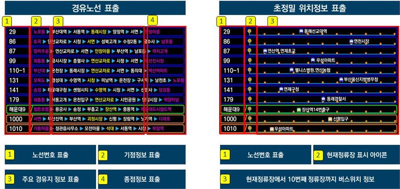 '스마트 버스정보안내기' 정보 표출 내용. 이상 부산시 제공
