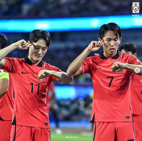 대한축구협회 공식 인스타그램에 올라온, 골을 넣은 후 선수들의 표정들을 소개합니다.