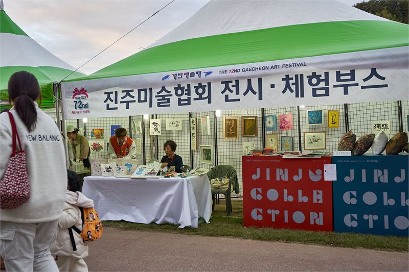 방문객들은 남강유등축제만 열리는 것으로 알지만 경남문화예술회관 앞 남강둔치~진주교 간에는 개천예술제 행사장이 있습니다. 개천예술제는 오는 13일 시작되지만 이 일대에는 진주공예인 축제 한마당과 풍물시장 등이 운영 중입니다.