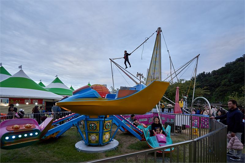 어린이들이 좋아하는 놀이기구도 있다. '디스코팡팡' 놀이기구에 올라 탄 시민들의 표정은 마냥 즐겁다.