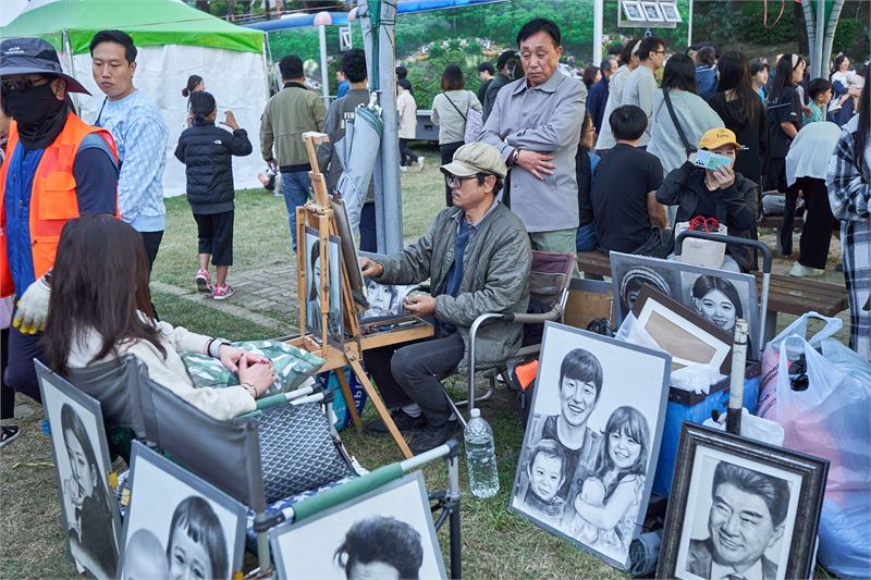 다음은 개천예술제 관련 사전 행사가 진행 중인 행사장 스케치입니다.