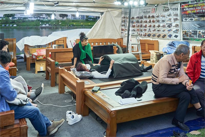 음식거리 곳곳에 천막을 친 빈 공간을 마련해 둬 쉬거나 음식을 먹을 수 있도록 했다.