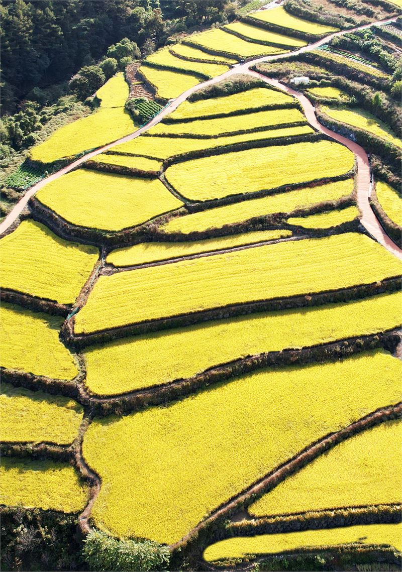 12일 경남 함양군 마천면 도마마을 다랭이 논에서 나락이 누렇게 익어 황금빛으로 물들고 있다. 작은 산골짝을 오르는 길이 익은 나락을 감싸듯 나 있다. 황금 논가의 푸른 밭이 하나의 점으로 자리해 이채롭다. 풍년을 기약하는 누른 다랭이논 주변엔 가을 추수가 시작되고 김장용 무우와 배추가 자라고 있다. 황금들녘도 조만간 수확에 나서면 그루터기 논으로 남아 북풍한설 겨울을 난다. 이상 산청군 제공 4 0 더경남뉴스 정창현 기자 gaia008@naver.com 정창현 기자의 기사 더보기 저작권자 ⓒ 더경남뉴스