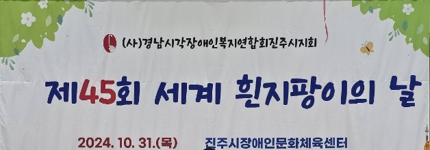 경남시각장애인복지연합회 진주시지회(회장 서창재)는 지난달 31일 진주시장애인문화체육센터 체육관에서 시각장애인과 가족, 자원봉사자 등 200여 명이 참석한 가운데 ‘제45회 세계 흰 지팡이의 날’ 기념행사를 개최했다.