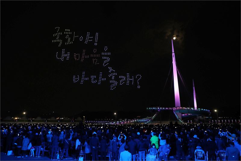 시민들이 드론이 만들어가는 축제를 즐기고 있다. 이상 창원시 제공
