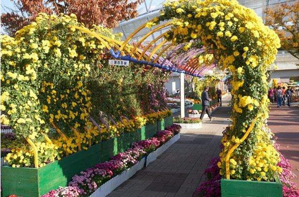 가을의 정취를 오롯히 느낄 수 있는 노란 가을국화 터널. 국화 향기를 맡으며 지나는 터널의 운치가 꽤 좋다.