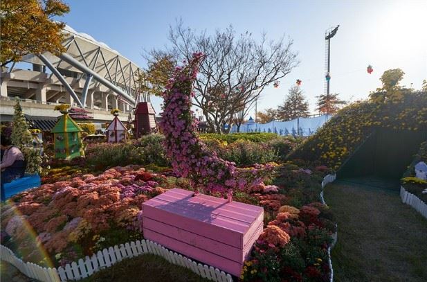 다양한 동물 형상에도 색상을 달리한 국화를 입혀 어린이 관람객들의 호기심을 자아내고 있다.