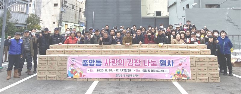 경남 진주시 중앙동 봉사단체협의회가 지난달 30일과 12월 1일 2일간 중앙동 행정복지센터 공영주차장에서 취약계층의 따뜻한 겨울나기를 위한 '사랑의 김장 나눔 행사'를 가졌다.
