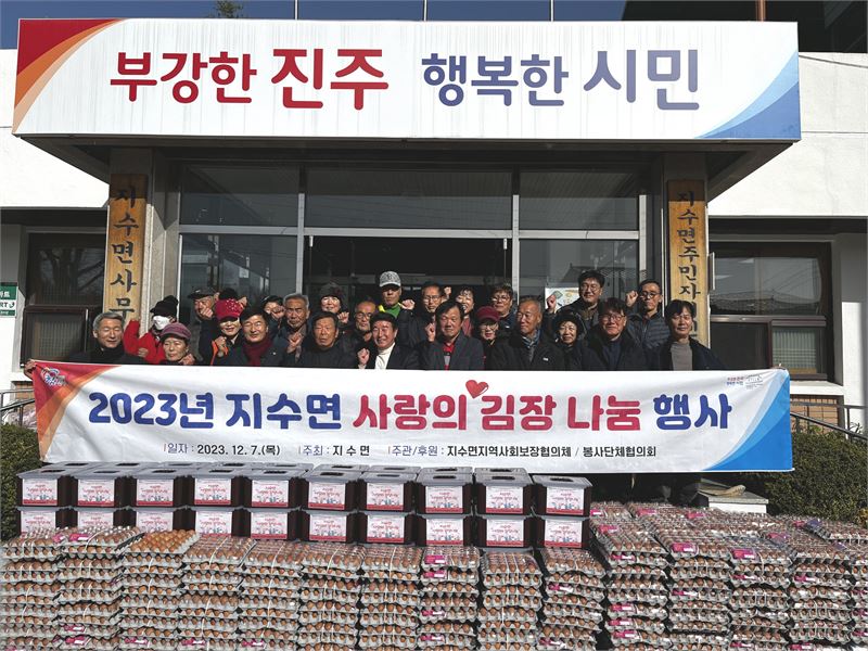 경남 진주시 지수면사무소는 7일 지역사회협의체(위원장 김학영) 주관으로 취약계층에게 나눠줄 ‘사랑의 김장 나눔 행사’를 가졌다.