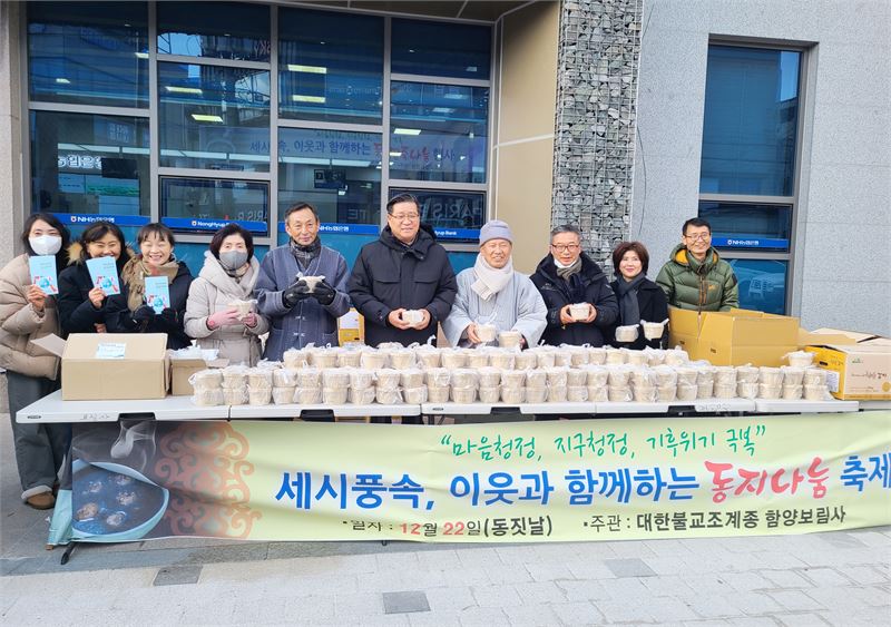 경남 함양군 보림사는 22일 동짓날을 맞이해 군민 1000명을 대상으로 동문사거리 군농협 앞에서 동지 팥죽 나눔 행사를 가졌다.