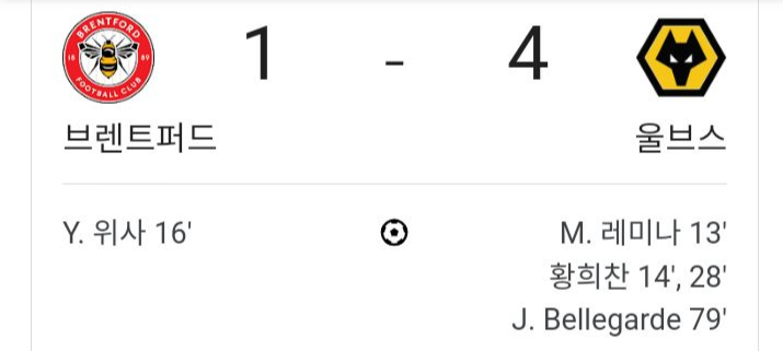 황희찬의 멀티골로 울버햄프턴은 4대 1 완승했다. 이로써 울버햄프턴은 7승 4무 8패(승점 25점)로 리그 11위로 올랐다. 5승 4무 9패의 브렌트퍼드는 승점 19로 14위에 머물렀다.