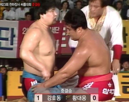'천하장사' 강호동을 준결승에서 꺾은 '불곰' 황대웅 선수 모습. 유튜브 'KBS Joy' 캡처