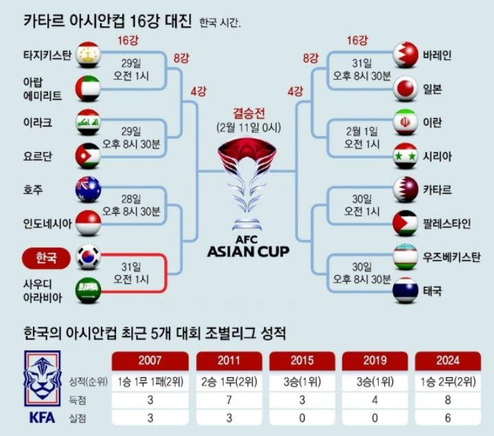 한국은 31일 카타르 알라이얀 에듀케이션시티 스타디움에서 벌러진 아시아축구연맹(AFC) 아시안컵 16강전에서 사우디아라비아와 전후반을 비겨 연장전을 치르고 있다.