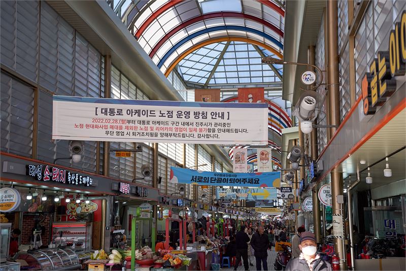 설을 10일 앞둔 지난 1일 서부경남 최대 전통시장인 진주중앙시장과 논개시장을 둘러봤습니다. 두 시장을 아치형 지붕을 경계로 붙어있습니다.