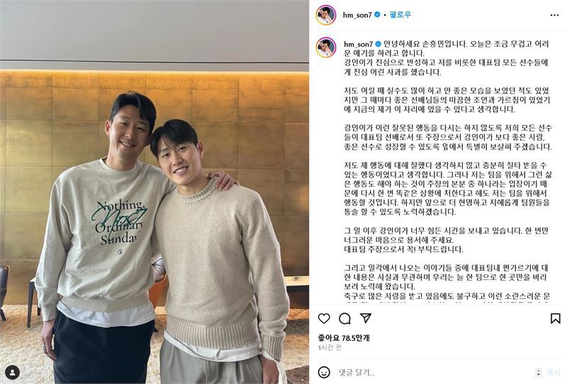 이강인은 이후 영국 런던으로 손흥민을 찾아 사과하면서 갈등을 봉합했다. 대표팀 선배들에게도 일일이 사과했다.