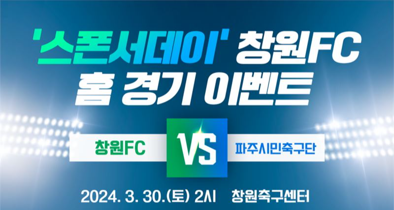 경남 창원FC가 오는 30일 오후 2시 창원축구센터에서 K3리그 3라운드 파주시민축구단과의 홈 경기에 첫 승리의 영광을 함께 할 팬들과 후원 업체를 초청해 스폰서데이 행사를 진행한다.
