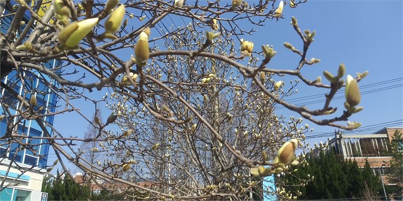 목련 꽃봉오리가 터지고 있지만 일부 나무엔 아직은 봉오리로 남았다.