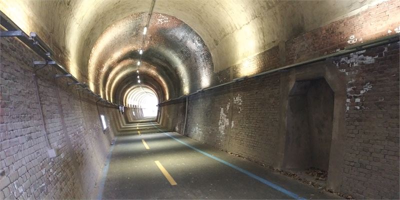 구운 벽돌로 차곡차곡 쌓아간 터널은 곡선이고 길지는 않다. 터널 안의 조명은 은은하다는 말이 맞을 정도로 화려하지 않다. 여느 기찻길 터널이 그렇듯 안쪽엔 선로작업을 하는 작업 인부 등이 피하도록 벽을 파서 공간을 만들었다. 100년 전에 이런 배려를 했다는 게 꽤 의미있게 와닿는다.