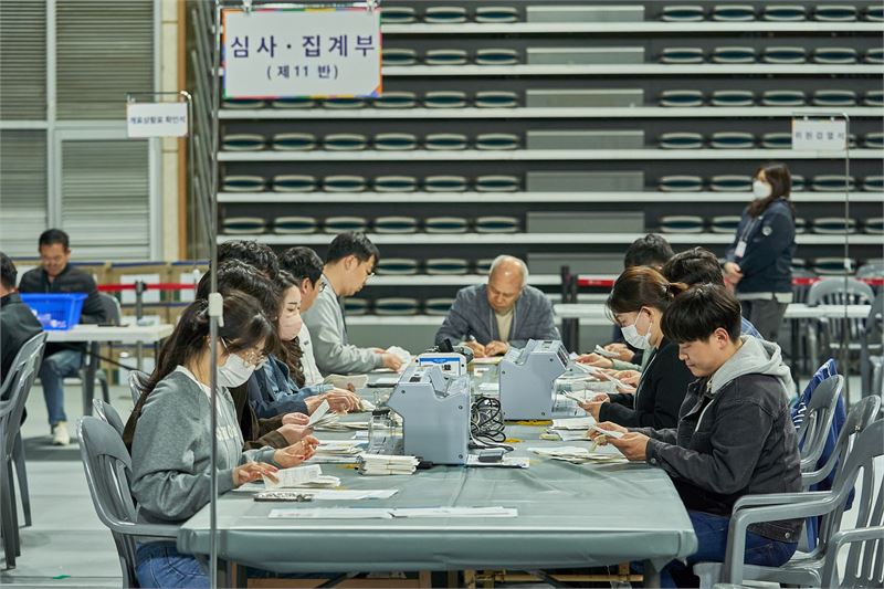 개표가 완료되면 개표 상황표 확인석에서 투표를 한 사람수와 투표지 수 등을 확인한다.