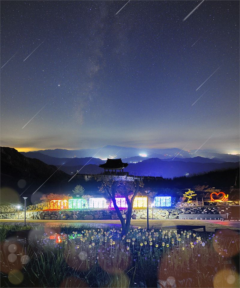황매산은 밤에도 좋다. 지리산 청정 공기에 밤하늘이 보다 선명하다. 능선길 옆에는 LED 등이 설치돼 있 또다른 어 볼거리다.