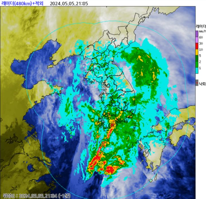 한편 부산기상청은 5일 밤 9시를 기해 경남 산청에 호우경보를 발효했다. 호우경보는 3시간의 강우량 90㎜ 또는 12시간 강우량이 180㎜를 넘을 것으로 예상될 때 발효된다.