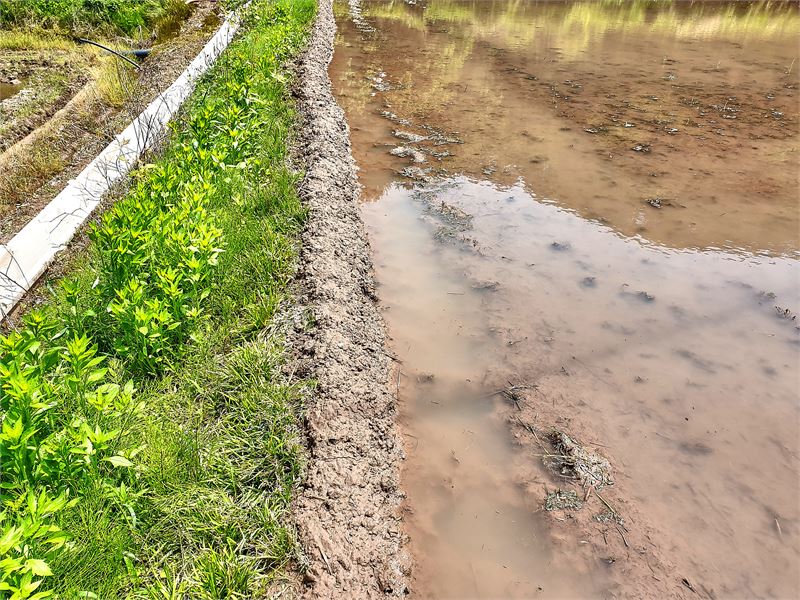 농기계를 이용하지 않고 만든 논둑. 아직도 소농가에선 수작업으로 논둑을 만든다.