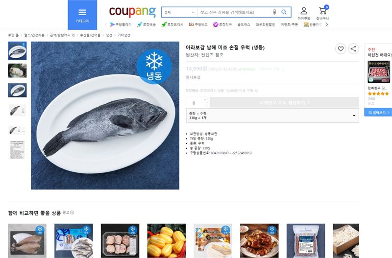 경남 남해산 우럭이 쿠팡 쇼핑몰에서 판매된다.