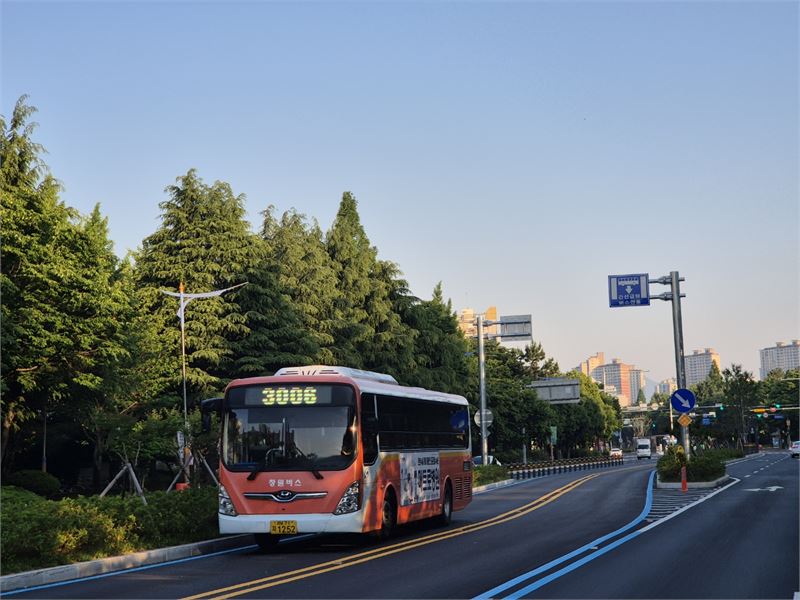 급행버스가 S-BRT 전용도로를 달리고 있다.