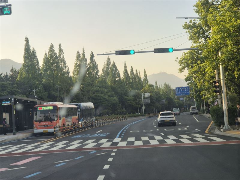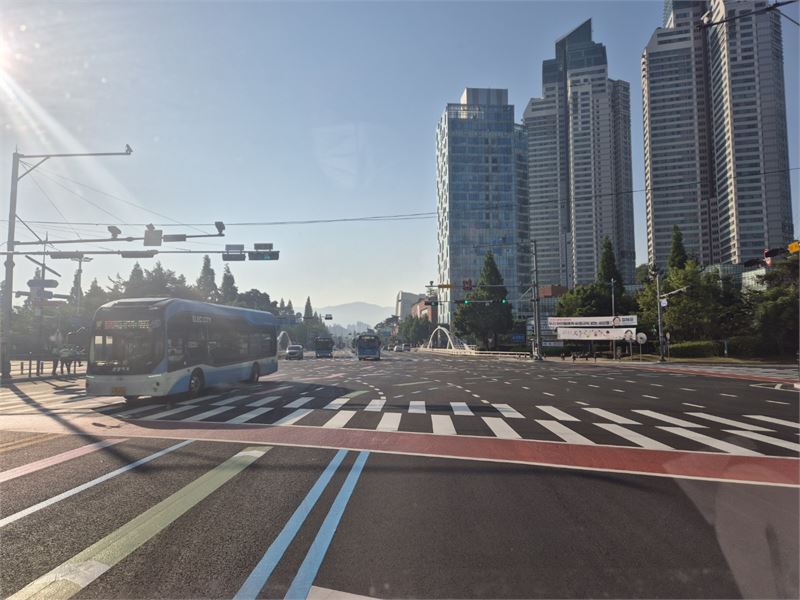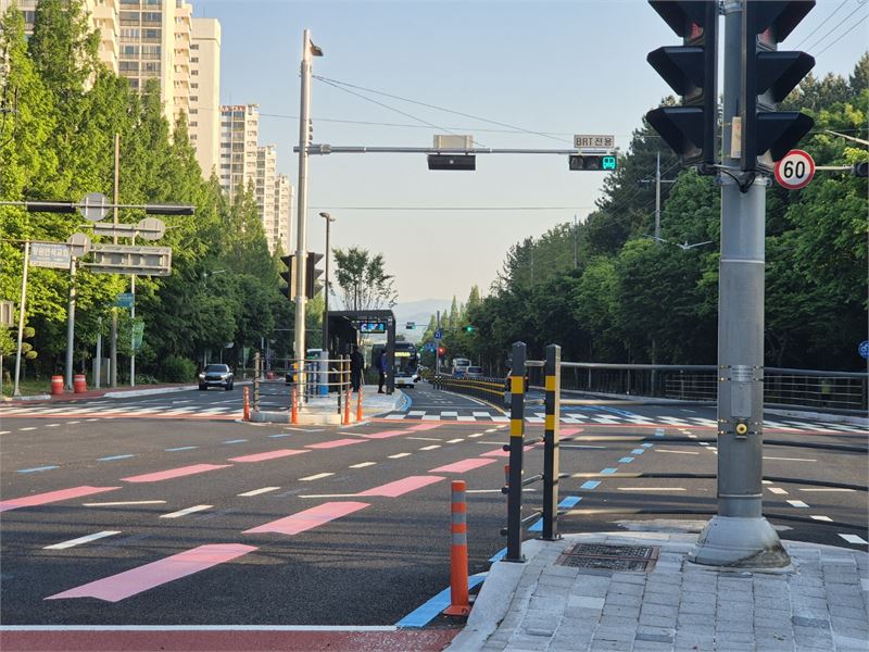 S-BRT에는 급행버스 말고도 일반버스도 다닙니다. 부처님오신날 휴일이어선지 도로가 크게 붐비지는 않았습니다. 다만 바뀐 신호체계로 일부 구간에서 차선이 좁아졌다 늘었다 해 혼란이 우려됐다.