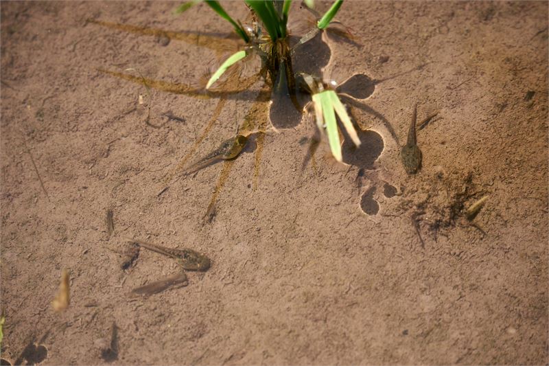 6월 초의 따사로운 햇빛이 내리쬐는 벼논에서 한가로이 노니는 올챙이들