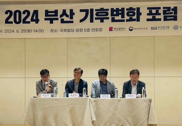 부산지방기상청은 25일 부산진구 양정동 국제빌딩에서 ‘1.5도를 넘은 지역사회의 기후재난 대응’을 주제로 '2024년 부산기후변화포럼'을 개최해 부산의 기후재난 공동 대응 및 협력 방안을 모색했다. 부산시와 부산연구원, APEC기후센터가 함께했다.