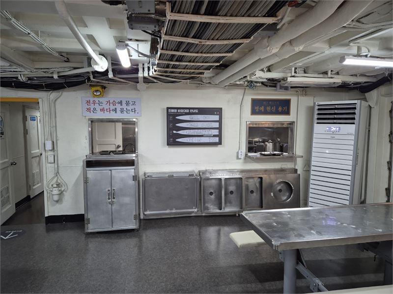 따라서 이곳은 '진해함 766' 수병들의 24시간 함정 생활을 직접 느껴보는 체험 전시관입니다. 한편으론 전사를 가진 진해함에서 비장함도 느낄 수 있는 공간입니다.