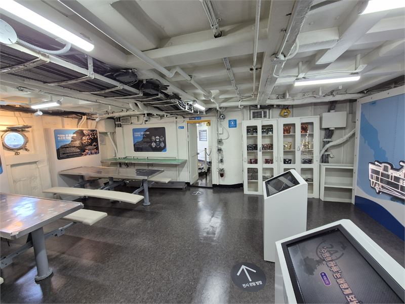 지상 1층 갑판층에는 조리실, 수병식당, 의무실, 기관조정실, 포술장실, 장교 화장실, 기관장실, 사관실이 있습니다.